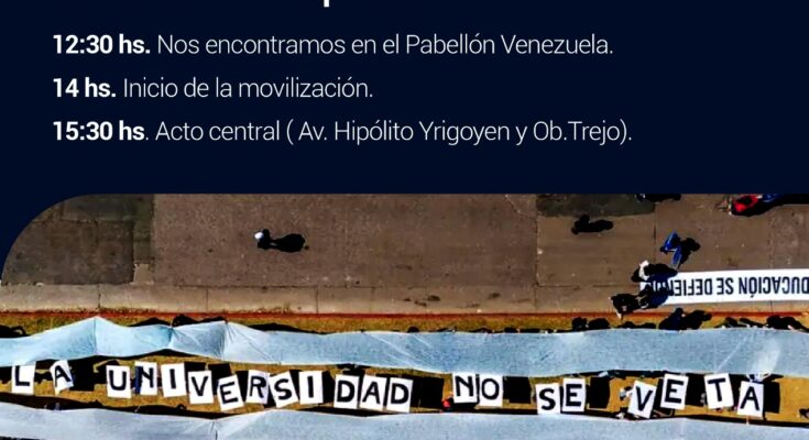 La FFyH convoca a encontrarnos en la explanada del Pabellón Venezuela a las 12:30 hs con las banderas y carteles, para desde ahí dirigirnos hacia el punto de concentración de esta gran marcha en defensa de la universidad pública.