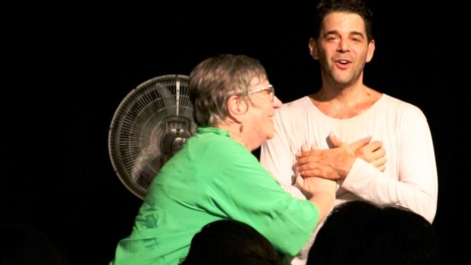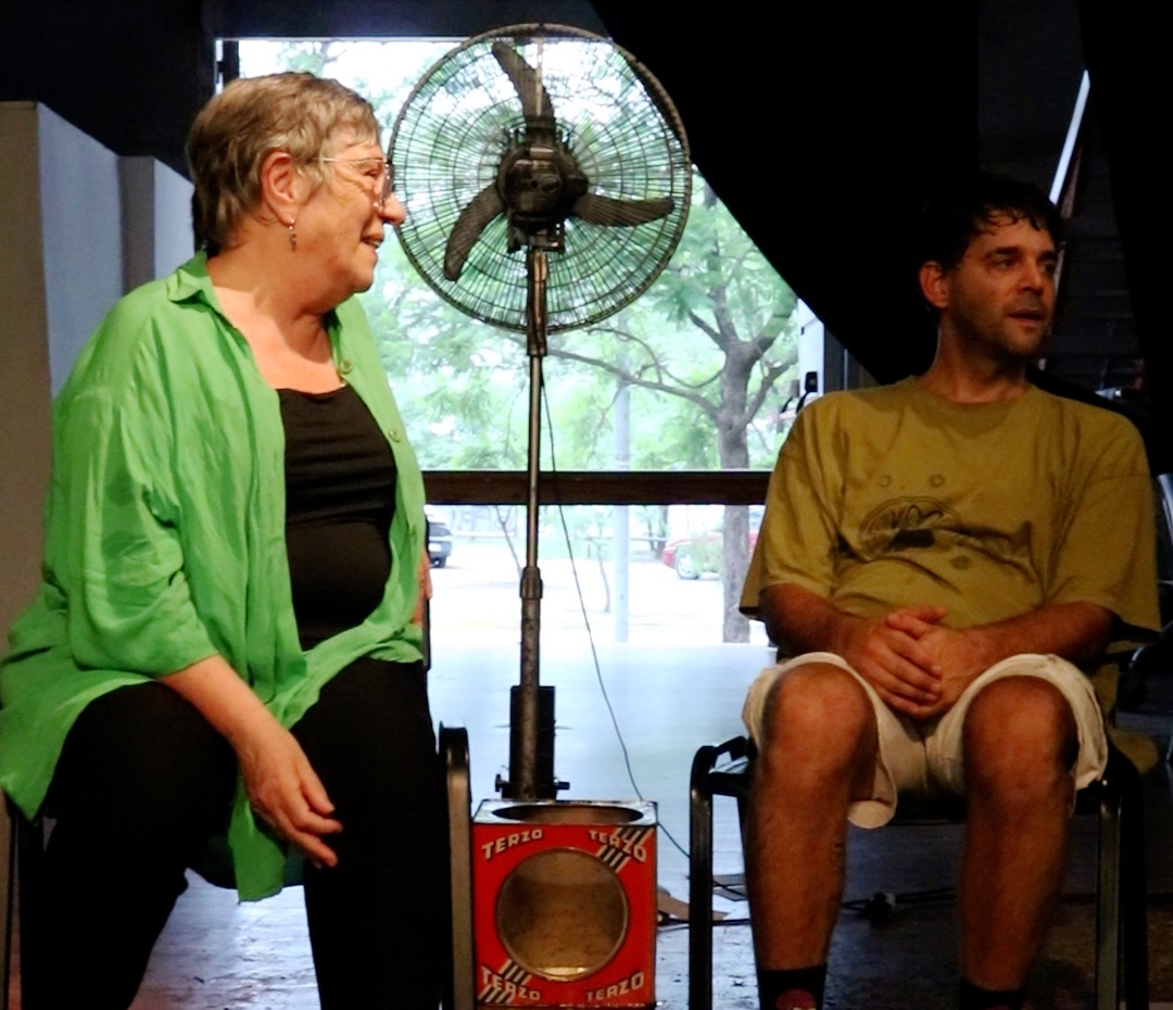 “Tere ha visto varias funciones de esta obra y siempre nos acompaña y es un plus para el público que su autora esté presente y poder dialogar con ella”, señala San Paulo, que cuenta que el espectáculo se armó en 2020, cuando por la pandemia del Coronavirus no se podía salir a hacer funciones: “Nos metimos en un proceso de investigación, creativo con este cuento, con la particularidad de abordarlo letra por letra. Es una obra con una impronta fuerte del teatro de objetos y de la actuación testimonial, a la cual le agregamos una mirada particular sobre lo que escribe Tere. Sobre las palabras de ella realizamos una pirueta poética, donde los objetos cumplen una función importante porque, por ejemplo, trabajamos la metáfora y un ventilador funciona como una metonimia de un avión, por su forma y movimiento, que nos remite a las hélices de los aviones. Una palabra y una referencia a un avión que nunca aparece en el texto, pero que está sobrevolando todo el tiempo en el relato”, completa el autor.