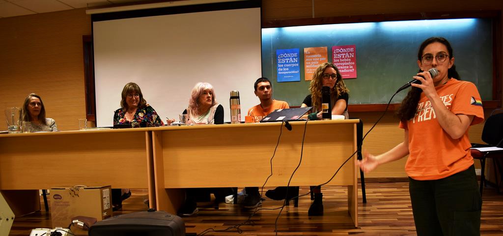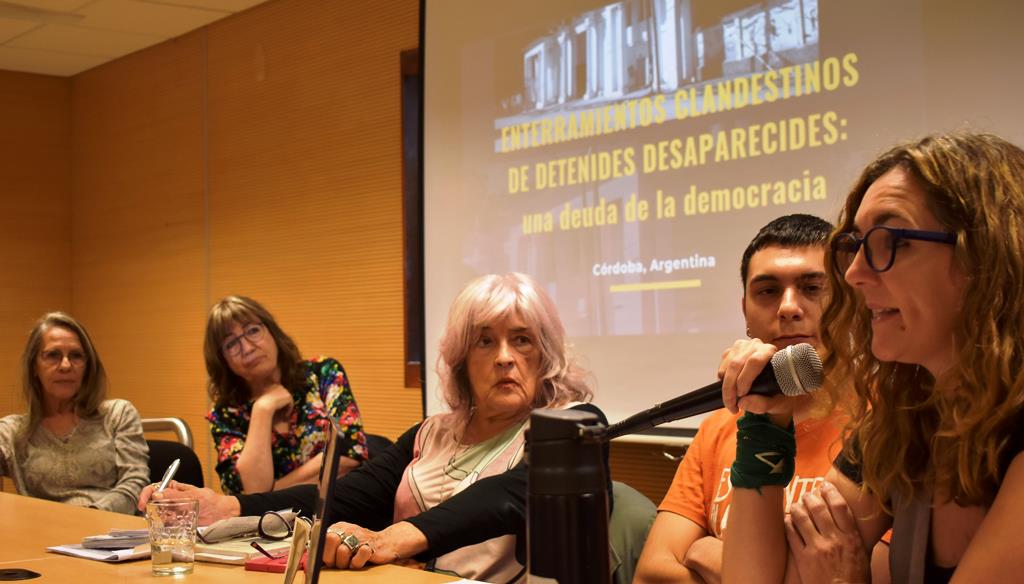 Culminado el panel, la palabra circuló entre un público muy activo, con aportes muy valiosos y propuestas concretas de trabajo. Una de ellas fue la de Carol Solis, docente de la Escuela de Historia e investigadora del CIFFyH: “Desde la disciplina histórica, los que trabajamos en clave de historia reciente podemos aportar de múltiples maneras, desde apoyar en investigaciones rigurosas las contextualizaciones de la represión en Córdoba y de las diversas formas de resistencia que generó la negación de los represores a explicitar el destino final de las personas desaparecidas, hasta avanzar en una sistematización de los antecedentes de estas búsqueda. Recordemos que las hipótesis sobre el posible destino han circulado de formas diversas en la sociedad cordobesa, en escenarios formalizados e informales y contribuir a relevar y sistematizar esas hipótesis puede ser una contribución esperada”.