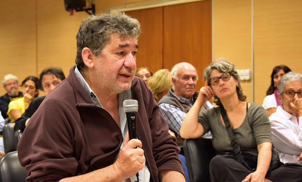 Proyectando imágenes del cementerio San Vicente en la pantalla, Paiaro señaló los acontecimientos del año 1984 (primera excavación, realizada con palas mecánicas, en ese lugar), los del 2003 (momento en que tuvo lugar el hallazgo, con técnicas de la antropología forense, de sepulturas individuales y de fosas comunes en San Vicente conteniendo cuerpos de desaparecides) y, finalmente, el 2014 (cuando, gracias al testimonio de un vecino de Malagueño, se encontraron fragmentos óseos humanos de desaparecidxs en los Hornos de Cal abandonados en La Estancia la Ochoa). “En toda la provincia de Córdoba, desde la vuelta a la democracia hasta el día de hoy, tan sólo han podido ser recuperados, identificados y restituidos a sus familias los cuerpos de 21 personas… Mientras que, entre mediados de los años 70 y principios de los 80, miles han sido secuestrados y desaparecidos en nuestra provincia. Por eso resulta urgente continuar la búsqueda para que las familias y la sociedad en su conjunto puedan conocer cuál es el destino y paradero de la enorme cantidad de cuerpos que aún continúan desaparecidos”.