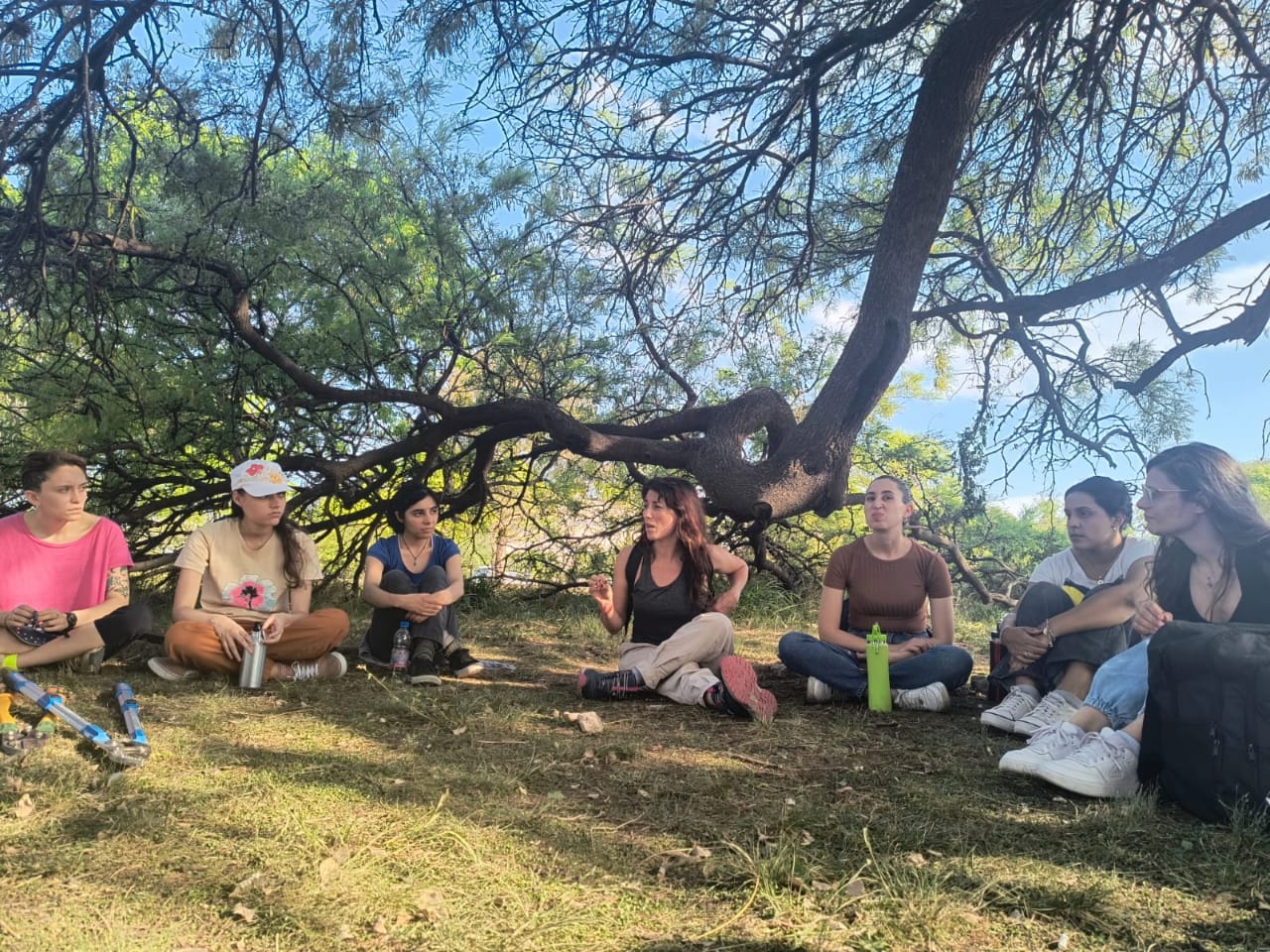 • En el mes de octubre nos reunimos con docentes e investigadorxs del Centro de Ecología y Recursos Naturales Renovables (CERNAR) – Facultad de Ciencias Exactas, Físicas y Naturales (FCEFyN) de la UNC, dado que nos convocaron a una acción conjunta interdisciplinaria mediante invitación de lxs responsables del Proyecto “El Bosque Nativo Vuelve” (Reserva Natural Urbana dentro de la Ciudad Universitaria). Realizamos una primera actividad presencial conjunta en Ciudad Universitaria denominada “Restaurando vínculos”, en el Aula Abierta Ramona de Bustamante (“El bosquecito” o ex Gota) con presencia del Programa de Ambiente, la Secretaría de Extensión y la Secretaría de Asuntos Estudiantiles de nuestra Facultad. En una posterior reunión pensamos una actividad permanente conjunta a implementarse desde 2026, en el marco de las propuestas de Extensión de la UNC, mediante el Programa de Compromiso Social Estudiantil en el cual se enmarca el Proyecto “El Bosque Nativo Vuelve”.