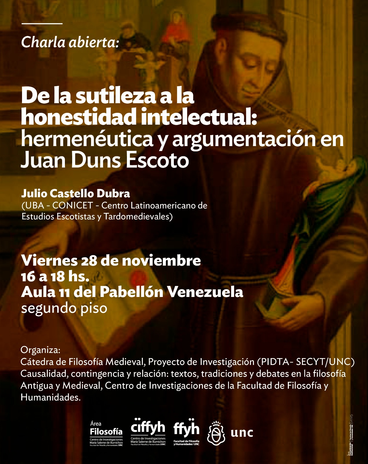 El Área Filosofía del CIFFyH invita a participar de la Charla abierta: De la sutileza a la honestidad intelectual: hermenéutica y argumentación en Juan Duns Escoto.