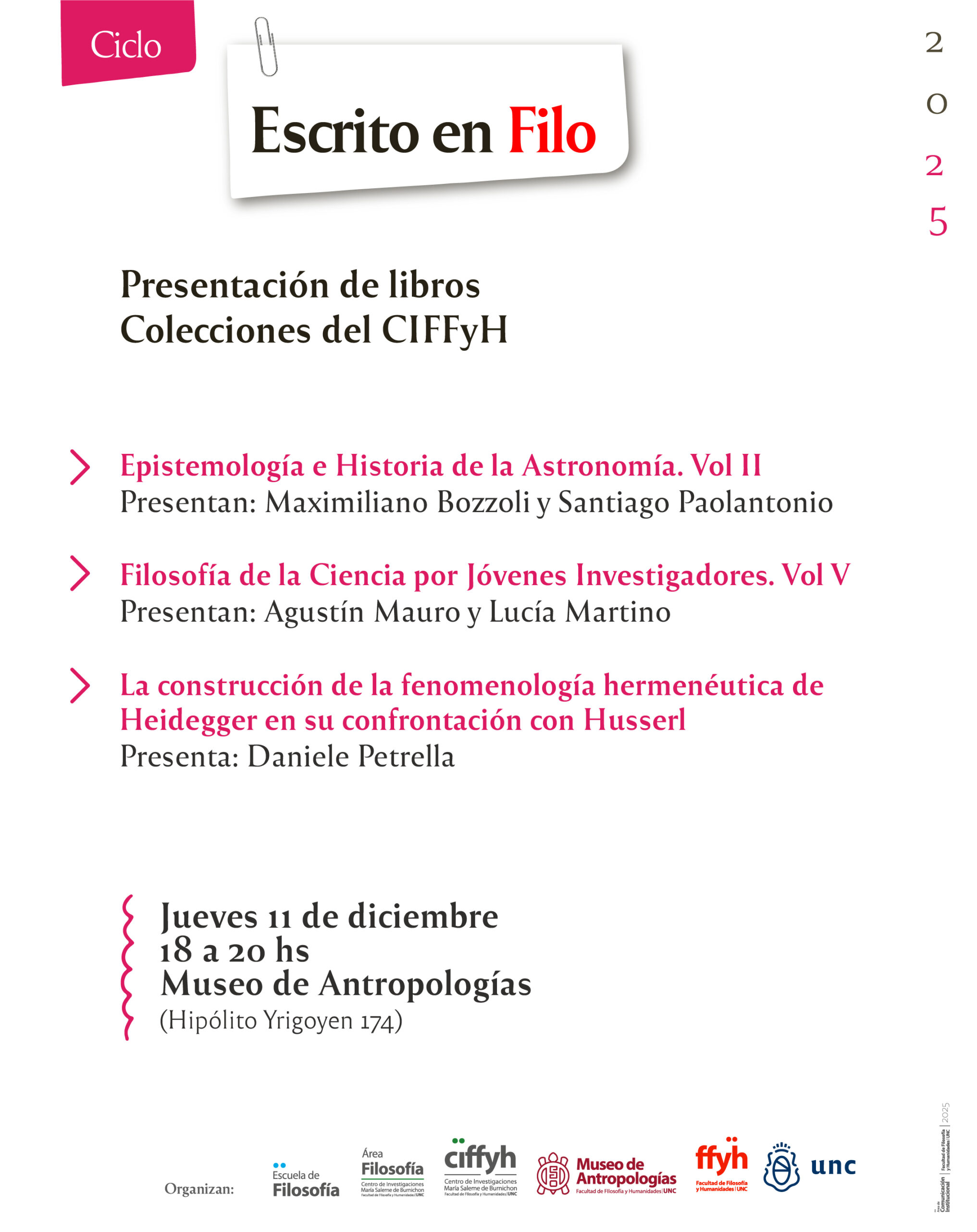 Esta nueva edición del Ciclo: Escrito en Filo se realizará el jueves 11 de diciembre, de 18 a 20 horas en el Museo de Antropologías de la FFyH y se presentarán los siguientes libros: