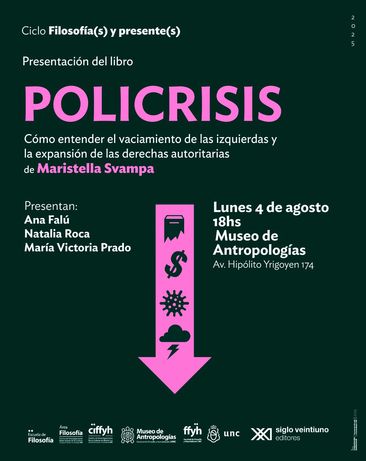 En el marco del Ciclo: Filsofía(s) y Presente(s) se presentará el libro Policrisis. Cómo entender el vaciamiento de las izquierdas y la expansión de las derechas autoritarias, de Maristella Svampa.