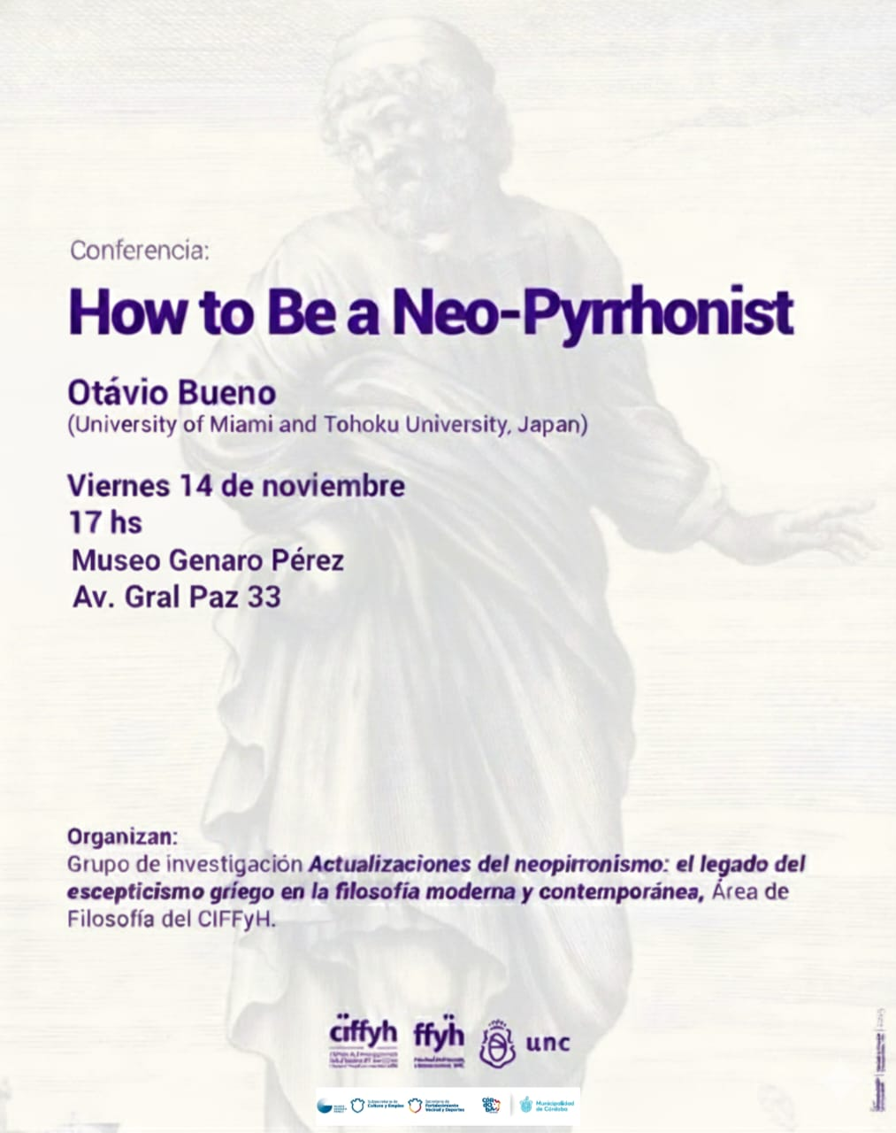 El Área Filosofía del Centro de Investigaciones María Saleme de Burnichon, invita a participar de la Conferencia: How to Be a Neo-Pyrrhonist, a cargo de Otávio Bueno de la University of Miami and Tohoku University, Japan.