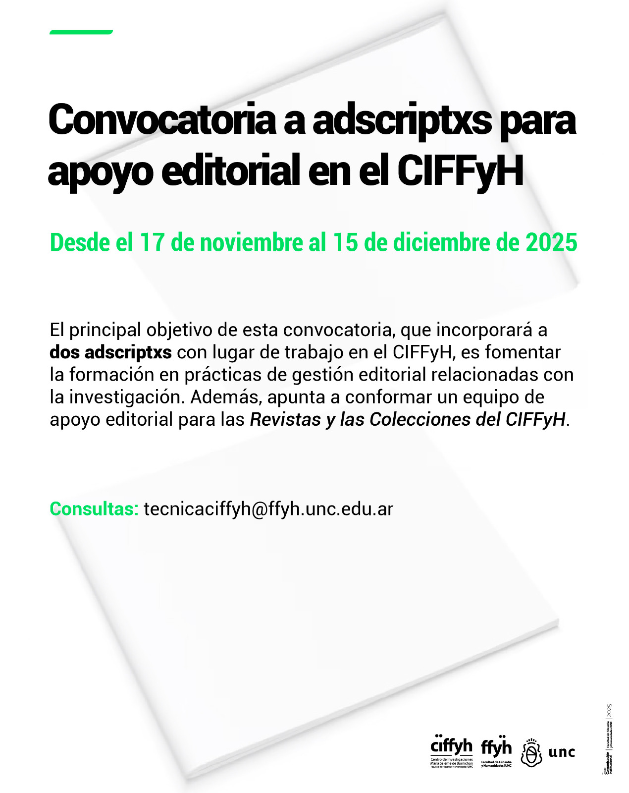 Convocatoria a adscriptxs para apoyo editorial en el CIFFyH