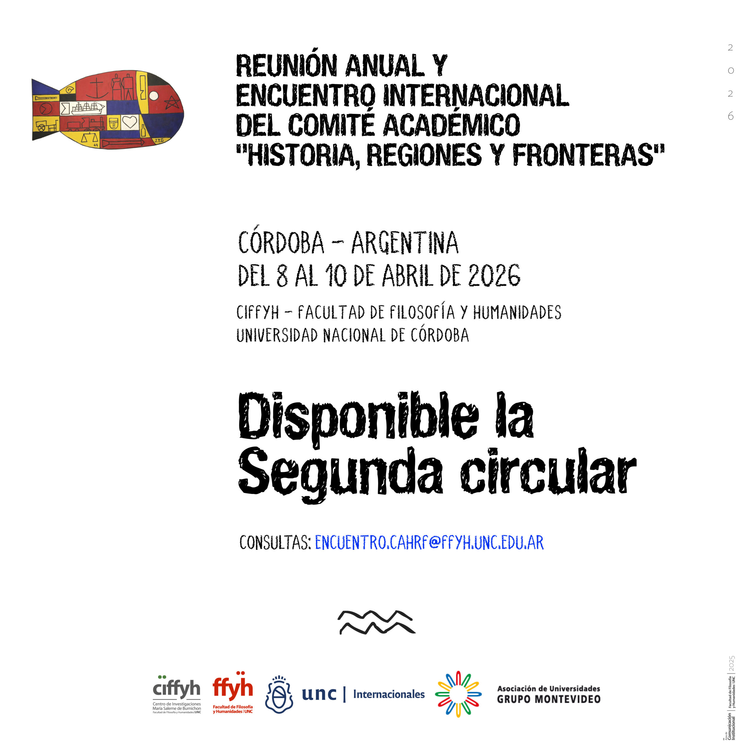Están disponibles la primera y segunda circular de la Reunión anual y encuentro internacional del comité académico: Historia, regiones y fronteras