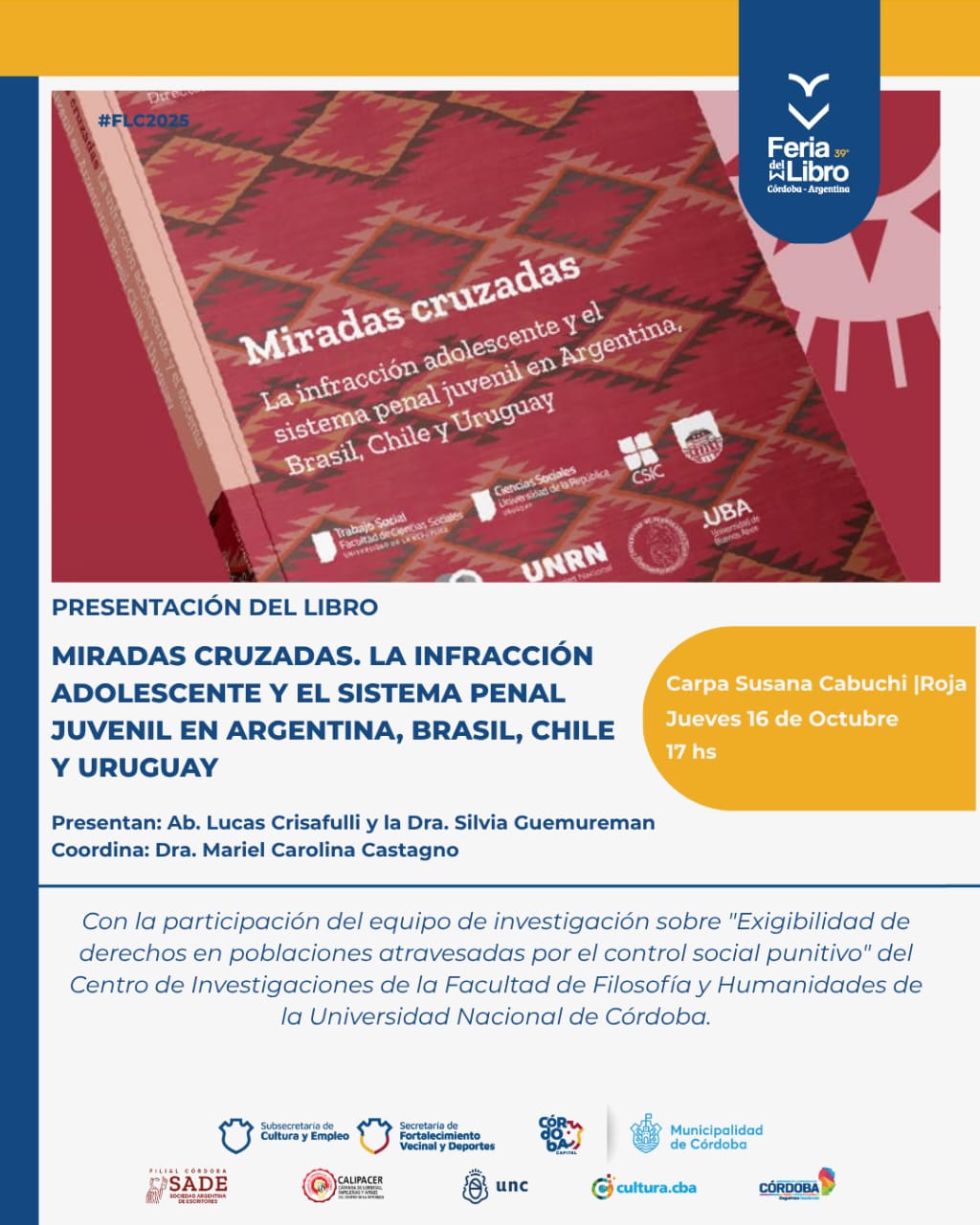 El Área Ciencias Sociales invita a la presentación del libro: Miradas cruzadas. La infracción adolescente y el sistema penal juvenil en Argentina, Brasil, Chile y Uruguay, a cargo de Lucas Crisafulli y Silvia Guemureman.