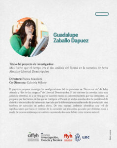 El proyecto propone investigar las configuraciones del río presentes en No es un río de Selva Almada y Río de las congojas de Libertad Demitrópulos. El río sostiene las novelas como una columna vertebral, es a su vera que se suceden todos los acontecimientos que las componen. La pregunta por las formas en las que se configura al Paraná en ambas novelas abre la posibilidad de delimitar dos estados del mismo río marcado por la diferencia temporal no solo de producción sino también de narración en ambas obras. De esta manera podemos identificar una red de significaciones que hacia el interior de la narración van mutando, pasando por distintos usos a modo de recurso retórico pero también exponiendo los usos del río como recurso natural.