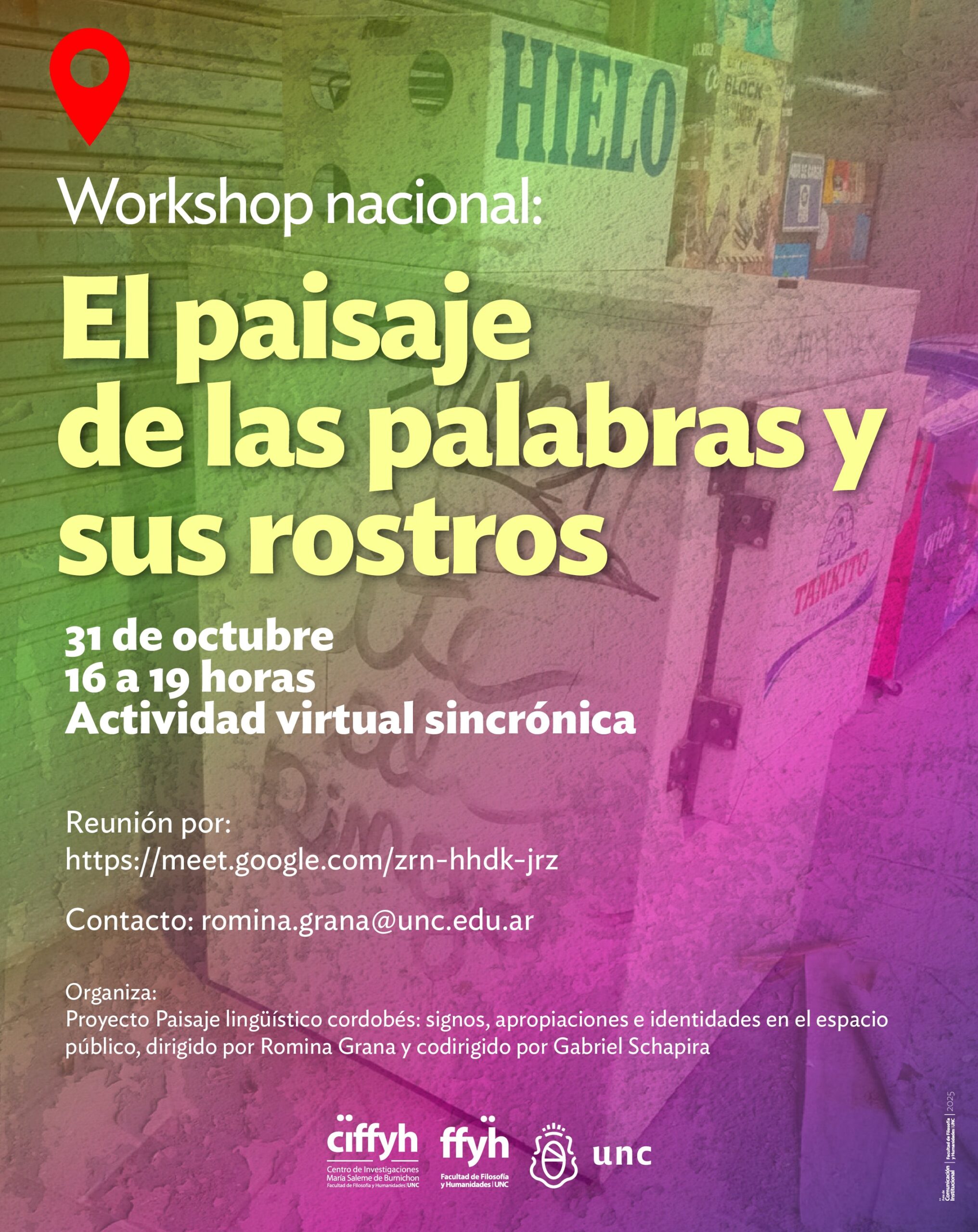 Organiza: Proyecto PAISAJE LINGÜÍSTICO CORDOBÉS: SIGNOS, APROPIACIONES E IDENTIDADES EN EL ESPACIO PÚBLICO, dirigido por Romina Grana y codirigido por Gabriel Schapira.