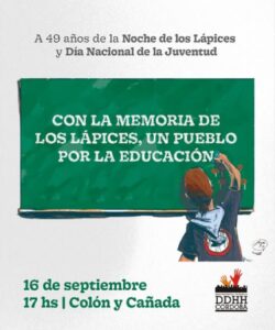 El martes 16 de septiembre, a las 17 hs, desde Colón y Cañada, el Programa de Derechos Humanos de la FFyH invita a marchar en memoria de la Noche de los Lápices, en el marco del Día Nacional de la Juventud.