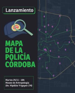 Las organizaciones impulsoras del «Mapa de la Policía – Córdoba» invitan al lanzamiento del Mapa de la Policía, a realizarse el martes 25 de noviembre a las 18:00 horas en el Museo de Antropologías (Av. Hipólito Yrigoyen 174).