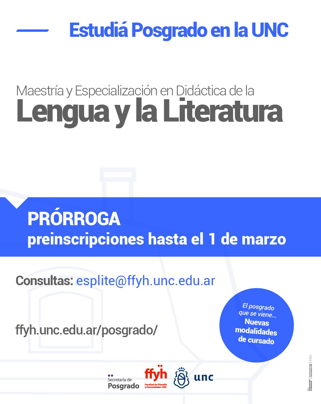 Las carreras de Especialización y Maestría en Didáctica de la Lengua y la Literatura renuevan el compromiso de la FFyH – UNC de contribuir con la formación especializada en teorías y prácticas de intervención en los dominios de la enseñanza de la Lengua y la Literatura. Antecedentes, experiencias y proyecciones de la Carrera de Especialización motivaron la creación de la Maestría en Didáctica de la Lengua y la Literatura, a fin de contribuir a una formación académica y profesional más amplia con base en la investigación de análisis situacional de problemáticas coyunturales, emergentes e históricas del campo de esta didáctica específica.
