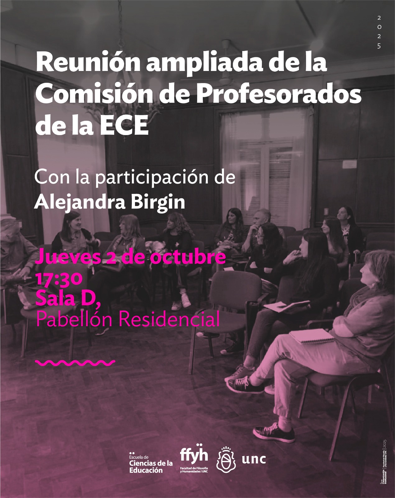 La Comisión de Profesorados de la ECE fue creada por Resolución Interna n° 7 (refrendada por Resolución Decanal n° 1358), está integrada por docentes de los distintos espacios curriculares de la Escuela de Ciencias de la Educación que participan de carreras de profesorados de otras Escuelas y Departamentos, y tiene por propósito construir acuerdos y desarrollar distintas iniciativas que fortalezcan las carreras de profesorados universitarios de la FFyH.