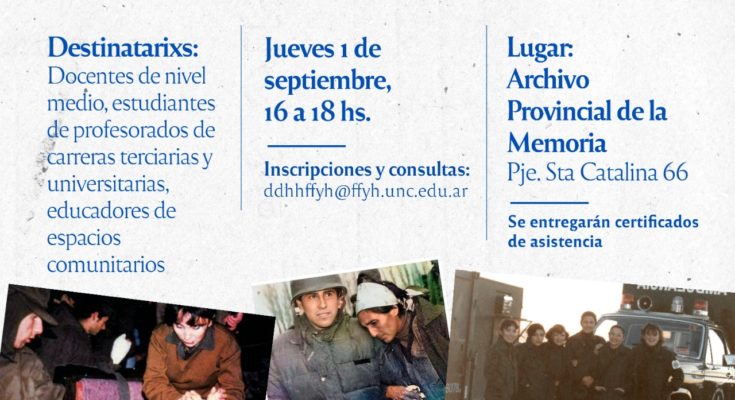 El Programa de Derechos Humanos de la FFyH y el Archivo Provincial de la Memoria invitan a un taller para pensar-nos en torno a la guerra, las consecuencias en soldados, enfermeras, familiares y la sociedad civil, y los históricos pedidos de soberanía. La actividad se llevará a cabo el jueves 1 de septiembre, de 16 a 18 hs, en el Archivo Provincial de la Memoria (Pasaje Santa Catalina 66) y está destinado a docentes de nivel medio, estudiantes de profesorados de carreras terciarias y universitarias y educadores de espacios comunitarios.
