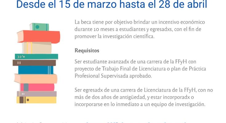 La Secretaría de Investigación, Ciencia y Técnica de la FFyH informa que se extiende el plazo de inscripción a las Becas de Iniciación en la Investigación 2023 hasta el 28 de abril.