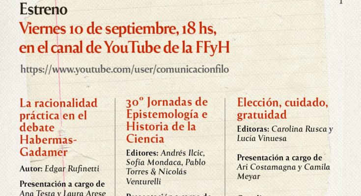 Organizado por el Área de Filosofía del CIFFyH y la Escuela de Filosofía, el estreno será el viernes 10 de septiembre, a las 18 hs, en https://youtu.be/egUDU1PSErI