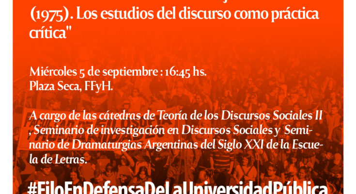 A cargo de las cátedras de Teoría de los Discursos Sociales II, Seminario de investigación en Discursos Sociales y Seminario de Dramaturgias Argentinas del Siglo XXI de la Escuela de Letras.
