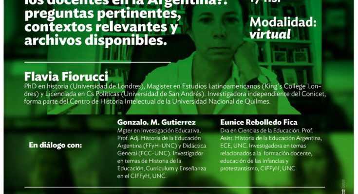 En el marco del ciclo de conversaciones “Investigación, experiencias educativas y saber pedagógico”, organizado por el Programa de Articulación entre Investigación educativa y Estudios de Posgrado en Educación de la FFyH, el viernes 26 de agosto, a las 17 hs, se llevará a cabo el conversatorio «¿Cómo contar la experiencia histórica de los docentes en la Argentina?: preguntas pertinentes, contextos relevantes y archivos disponibles», a cargo de Flavia Fiorucci en diálogo con Gonzalo Gutiérrez y Eunice Rebolledo Fica.