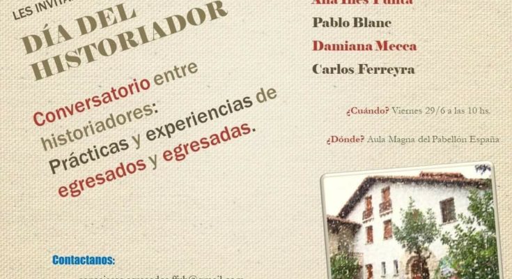 En el marco de los festejos del Día del Historiador, el viernes 29 de junio, a las 10 hs, se desarrollará un conversatorio con egresadas y egresados de distintas épocas de la Escuela de Historia, en el aula Magna del Pabellón España.