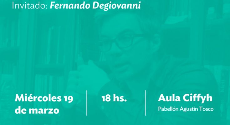 A cargo de Fernando Degiovanni, se llevará a cabo el día miércoles 19 de marzo, a las 18 hs, en el Aula del CIFFyH (Pabellón Agustín Tosco, Ciudad Universitaria), organizado por el proyecto de investigación “Territorialidades latinoamericanas en mundos por-venir: poéticas de re-paisamiento y re-comienzos en los ensamblajes heterogéneos en la literatura y el arte contemporáneos y el programa  de investigación “Escrituras latinoamericanas. Literatura, teoría y crítica en debate”.