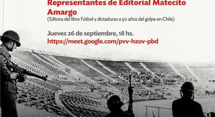 Participarán Marcelo Acevedo (espacio de memoria “Estado Nacional Memoria Nacional”, Chile), Jorge Vidal Bueno (Universidad Santo Tomás, Chile) y representantes de la Editorial Matecito Amargo (editora del libro “Fútbol y dictadura. A 50 años del golpe en Chile).