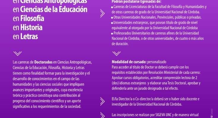 Más información: https://ffyh.unc.edu.ar/posgrado/doctorados/inscripciondoctorado/