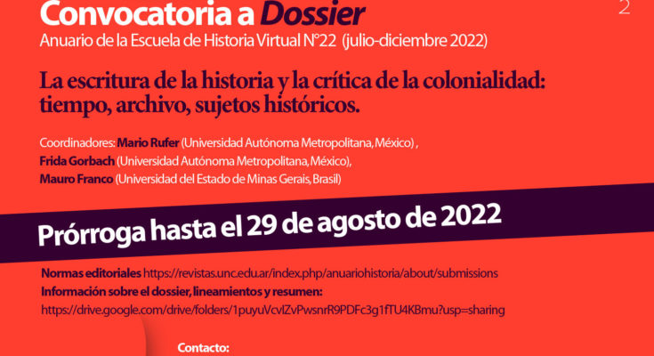 Se prorrogó hasta el 29 de agosto de 2022 el envío de artículos al dossier del Anuario de la Escuela de Historia, que serán publicados en el Nº 22.