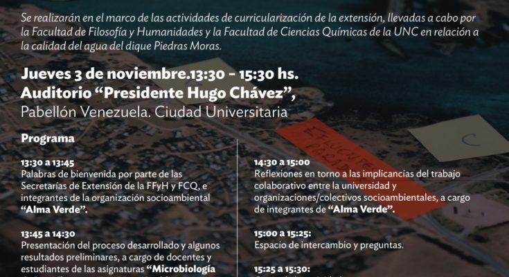 Durante el mes de septiembre de este año, la asignatura “Microbiología de los Alimentos” de la carrera de Bioquímica, de la Facultad de Ciencias Químicas, la Cátedra de “Ambiente Físico”, y el Seminario Optativo “Geografía Física Crítica y Naturalezas del Antropoceno” de la Licenciatura en Geografía, de la Facultad de Filosofía y Humanidades, junto con la organización socioambiental “Alma Verde” de la localidad de Almafuerte, iniciaron un trabajo de carácter interdisciplinario e intersectorial.