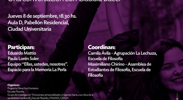 La actividad contará con la participación de Eduardo Mattio, Paula Lorén Soler y el equipo “Ellas, ustedes, nosotres” del Espacio para la Memoria La Perla y será coordinada por Camila Ávila de la Agrupación La Lechuza y Maximiliano Chirino de la Asamblea de Filosofía.
