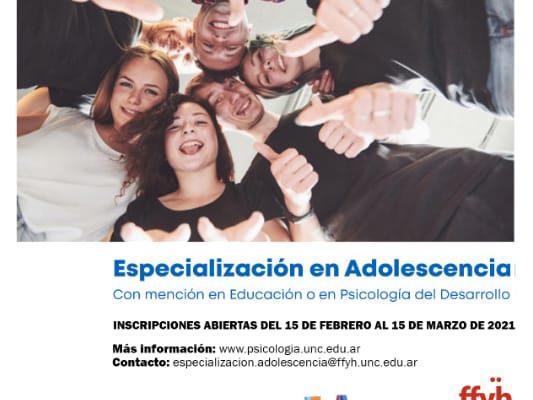 Más información: https://psicologia.unc.edu.ar/projects/especializacion-en-adolescencia-con-mencion-en-psicologia-del-desarrollo-o-en-educacion/?portfolioCats=302