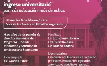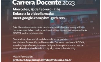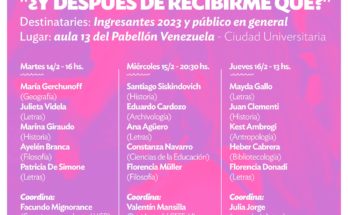 06/12/2022 @ 6:00 pm – En el marco del proyecto institucional de la Escuela de Filosofía “Improntas de la dictadura en el campo filosófico de Córdoba”, el martes 6 de diciembre a las 18 hs., en la Sala de Profesores, Pabellón Francia, se llevará a cabo una conversación con Francisca Mattoni sobre Institucionalización de la filosofía en la Universidad Nacional […]