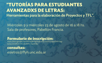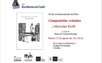 15/08/2023 @ 12:00 am – En el marco del ciclo “Escritores en Casa”, organizado por la Escuela de Letras, el martes 15 de agosto, a las 18hs en el Aula A de las Baterías A, se llevará a cabo la presentación del libro “Composición: cristales”, de Mercedes Roffé, que tendrá lugar como parte de las actividades de las cátedras de […]