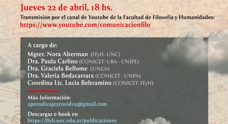 Se llevará a cabo el jueves 22 de abril, a las 18 hs. La transmisión se realizará en vivo por el canal de Youtube de la Facultad de Filosofía y Humanidades: https://www.youtube.com/comunicacionfilo