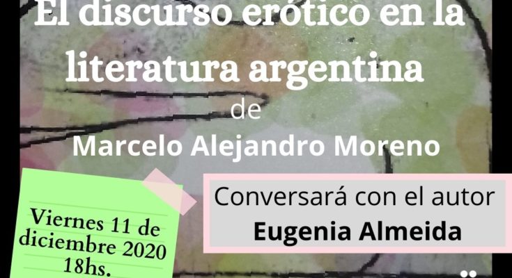 La presentación del libro El discurso erótico en la literatura argentina de Marcelo Moreno, se realizará el día viernes 11 de diciembre a las 18 hs, a través de la plataforma Meet en https://meet.google.com/yrs-wjyf-umg