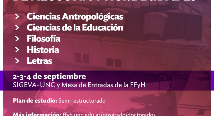 Bases de la convocatoria: https://ffyh.unc.edu.ar/posgrado/doctorados/inscripciondoctorado/