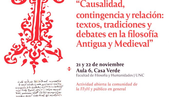 El proyecto de investigación “Causalidad, contingencia y relación: textos, tradiciones y debates en la filosofía Antigua y Medieval” radicado en el Centro de Investigaciones de la FFyH “María Saleme de Burnichón” organiza esta actividad para los días 21 y 22 de noviembre de 2024 en el Aula 6 del Pabellón Casa Verde (Ciudad Universitaria).