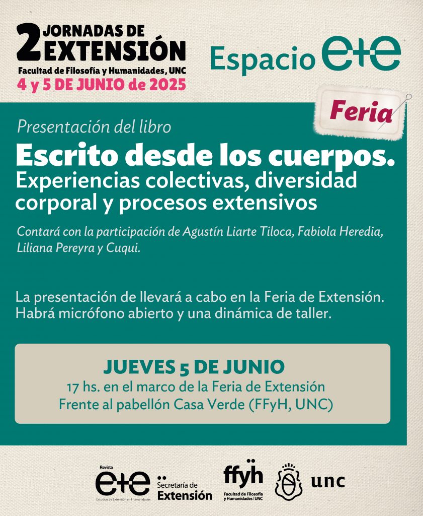 También, se llevará adelante la Presentación del libro: Escrito desde los cuerpos. Experiencias colectivas, diversidad corporal y procesos extensivos