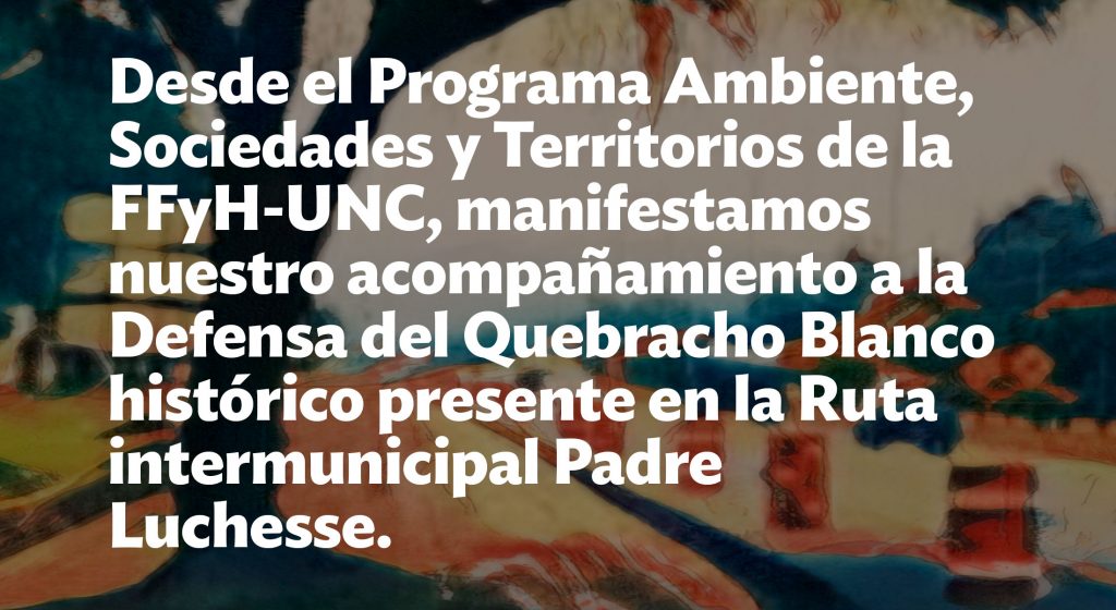 Desde el Programa Ambiente, Sociedades y Territorios de la FFyH-UNC, manifestamos nuestro acompañamiento a la defensa del Quebracho Blanco histórico … Sigue leyendo Desde el PAST manifestamos nuestro acompañamiento a la defensa del Quebracho Blanco