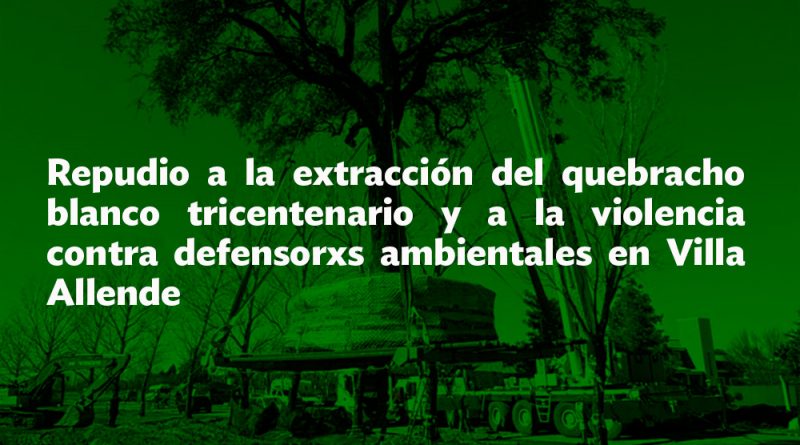 Repudio a la extracción del quebracho blanco tricentenario y a la violencia contra defensorxs ambientales en Villa Allende