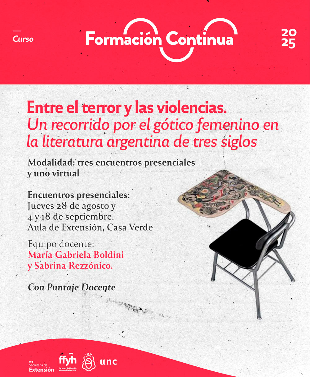 El curso ofrece un corpus de escrituras góticas de mujeres en la literatura argentina de los siglos XIX, XX y XXI, dispuestas en una cronología histórica, para dar cuenta del desarrollo del género, la conformación de tradiciones literarias y problemáticas específicas que atraviesan el entramado social. Consideramos que esta propuesta puede aportar en distintos aspectos a las prácticas pedagógicas y los aprendizajes curriculares.