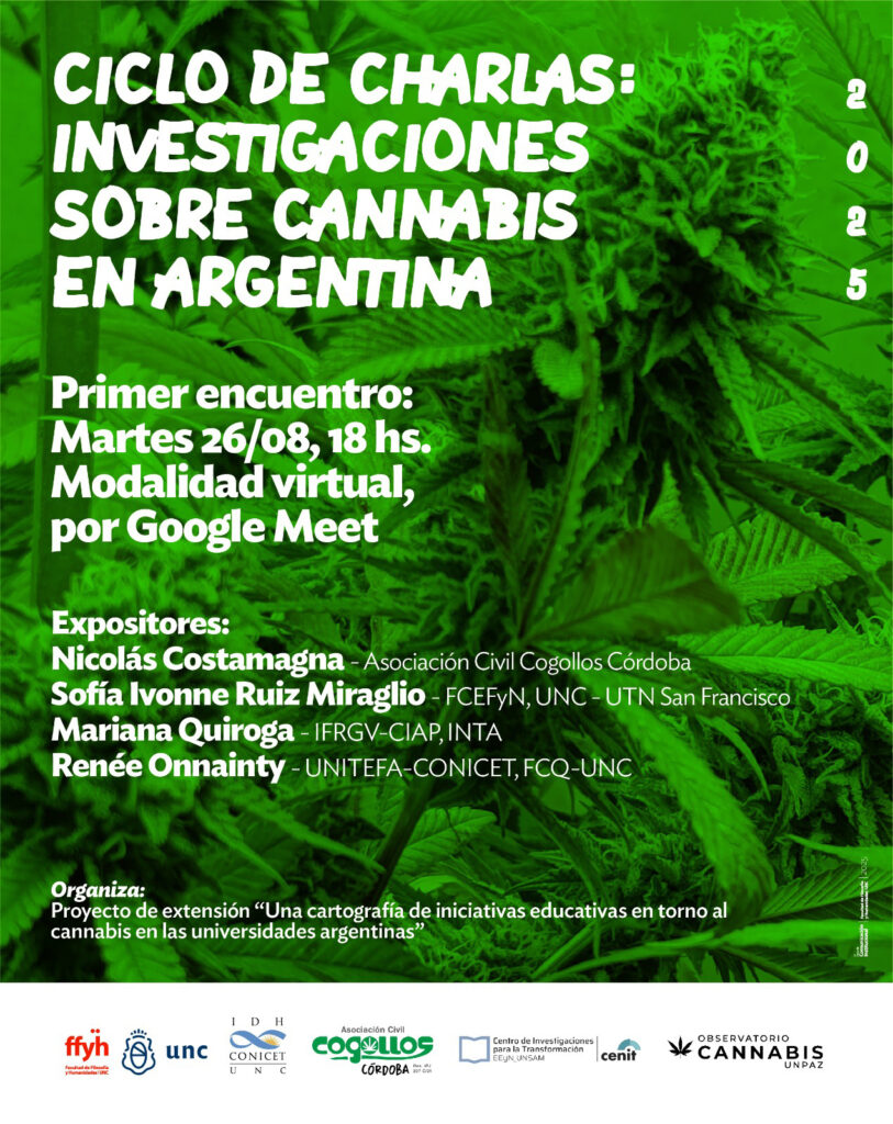 Organiza: Proyecto de extensión “Una cartografía de iniciativas educativas en torno al cannabis en las universidades argentinas” (FFyH, UNC),  Asociación Civil Cogollos Córdoba, CENIT (UNSAM) y Observatorio de Cannabis (UNPAZ).