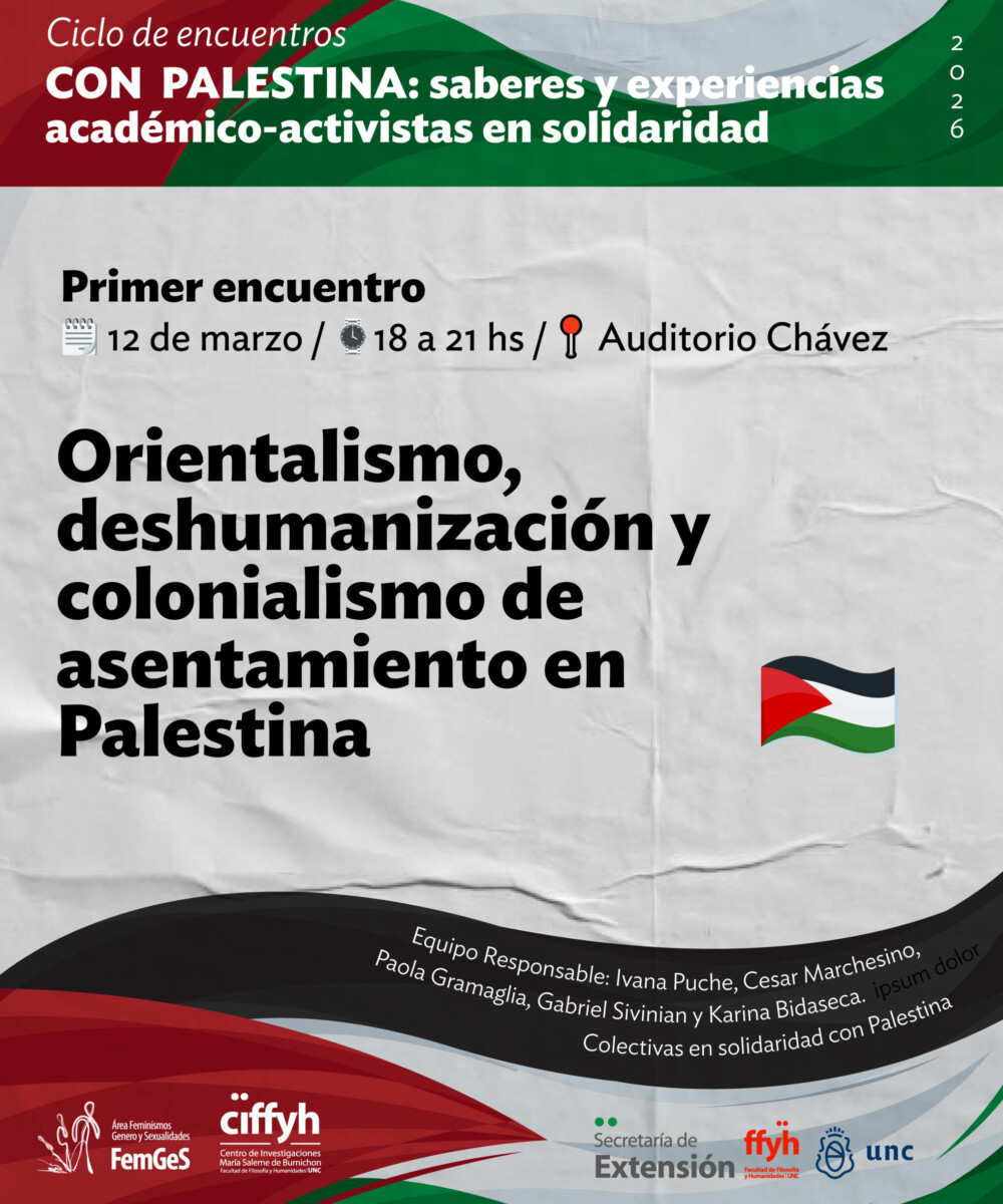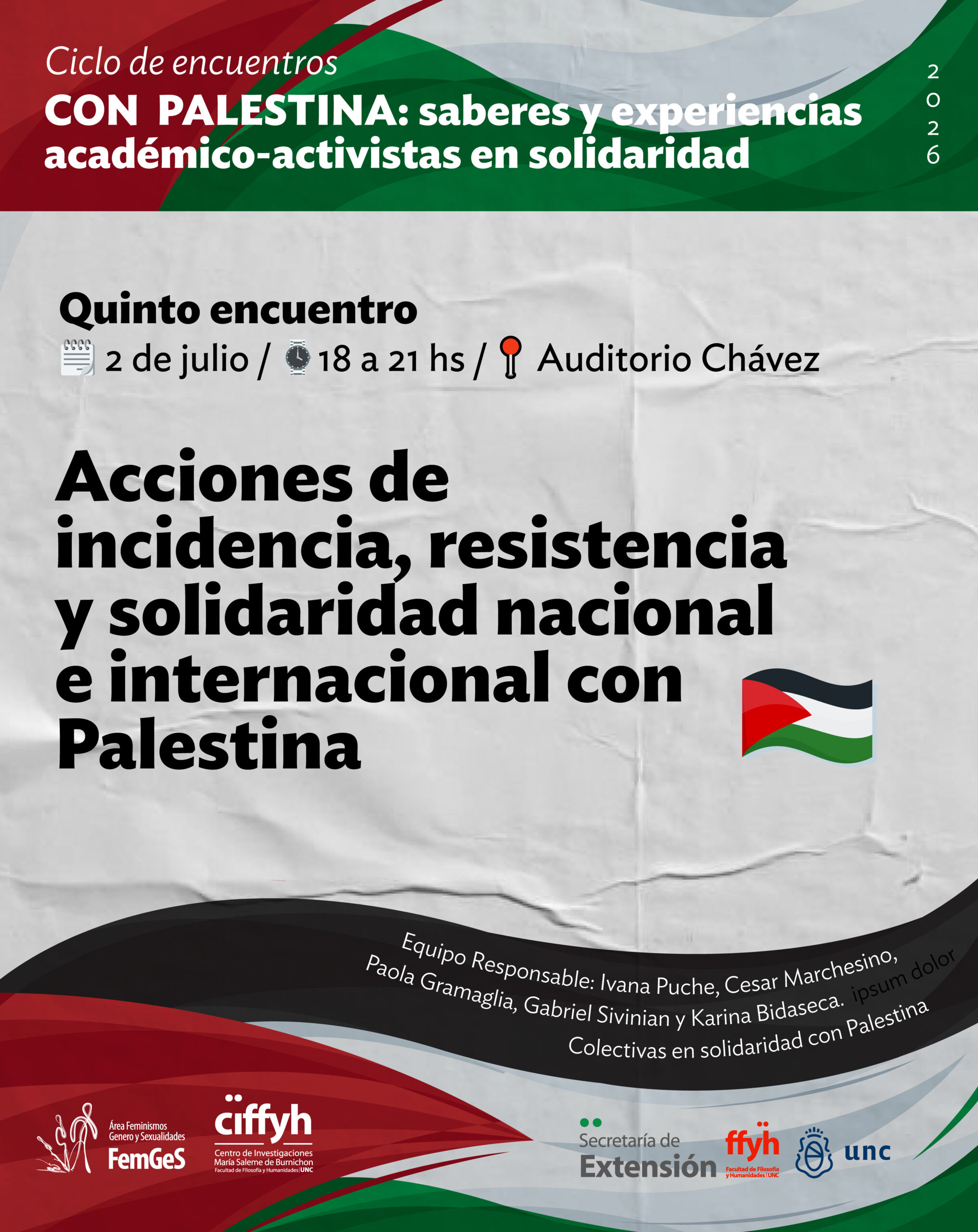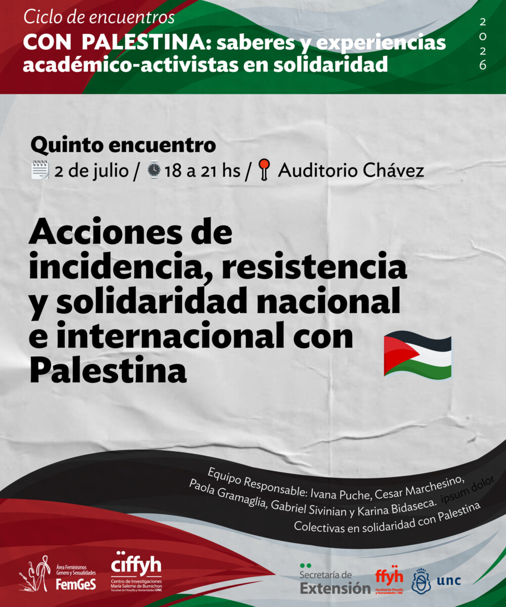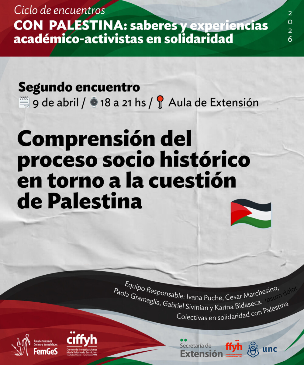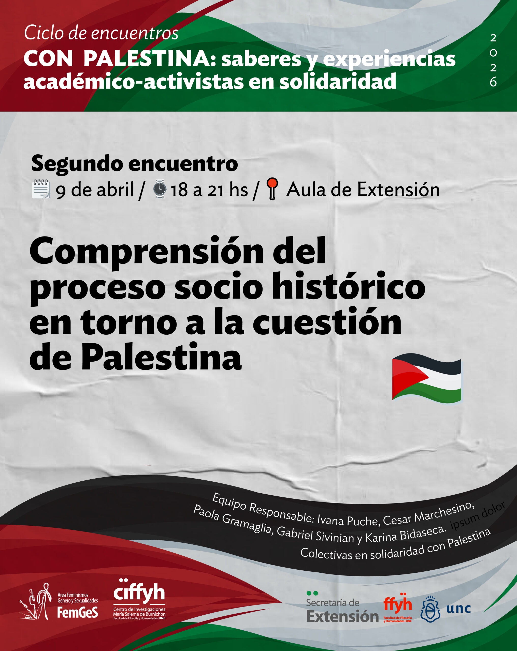 «CON PALESTINA: saberes y experiencias académico-activistas en solidaridad» busca problematizar, historizar y contextualizar la situación del pueblo palestino en un marco socio-político mundial de avanzada de discursos y prácticas supremacistas, racistas, sexistas, capitalistas y neoliberales que socavan transformaciones sociales producidas en los últimos años en torno a la ampliación de derechos de vastos sectores, identidades y territorios de la sociedad.