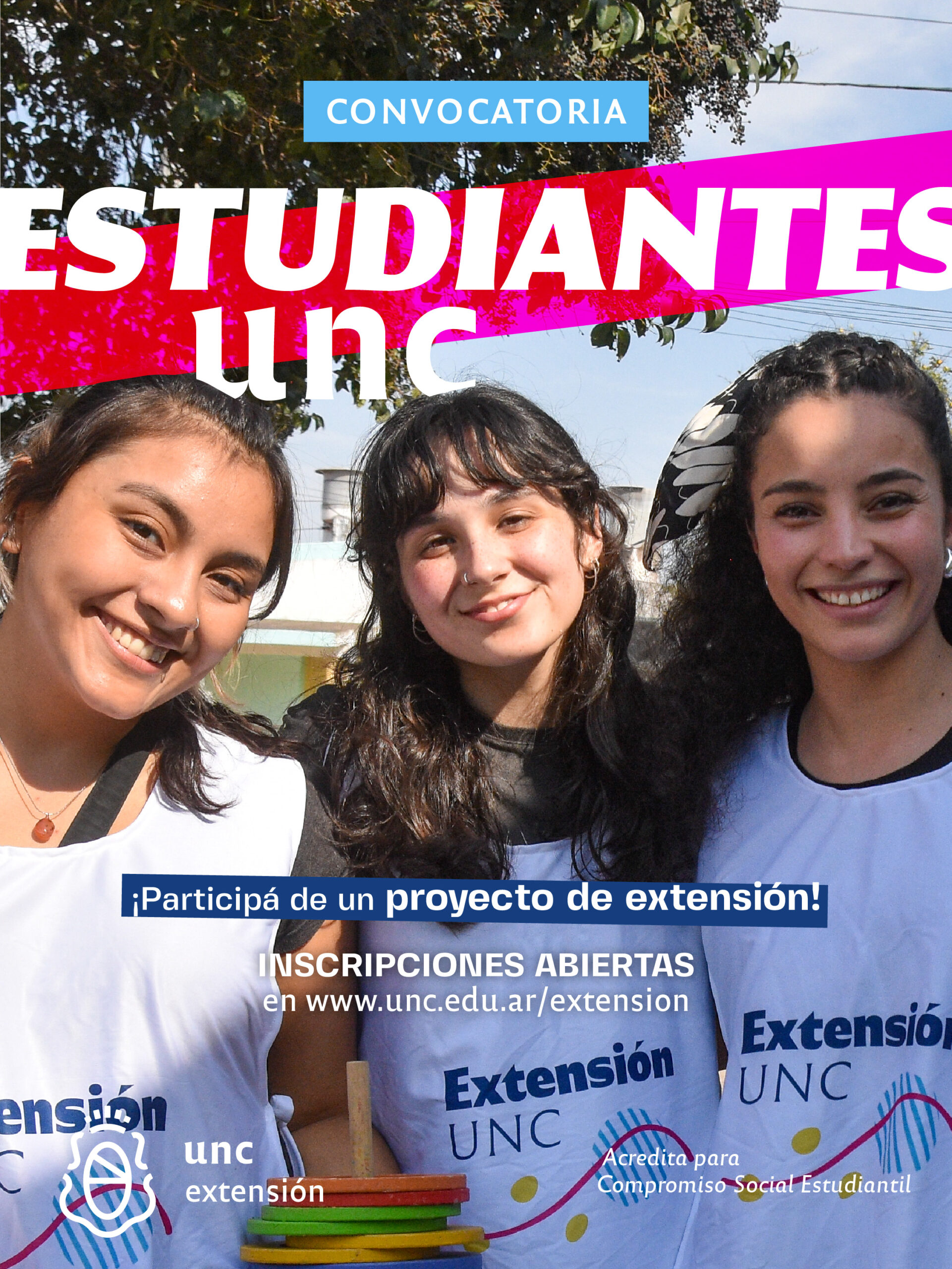 La Secretaría de Extensión Universitaria (UNC) invita a estudiantes de cualquier carrera de la UNC a participar en proyectos extensionistas que se desarrollarán en diferentes espacios y puntos de Córdoba durante el 2026.
