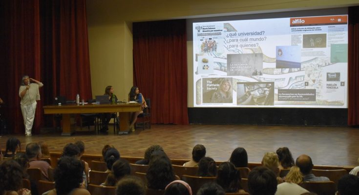En este sentido, Pagola planteó que “estudiar en la universidad en el presente supone un conjunto de competencias de gestión de información, para la búsqueda, validación y curación que requieren herramientas y procesos, pero también reflexión y discusiones éticas sobre las cuales los profesionales de la FFyH aportan perspectivas valiosas y necesarias”.
