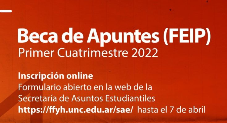 La Secretaría de Asuntos Estudiantiles informa que ya pueden ingresar a la web de la SAE para verificar a que grupo de beneficiarixs pertenecen, qué documentación deben enviar por mail y completar el formulario de inscripción: https://ffyh.unc.edu.ar/sae/becas/beca-feip/