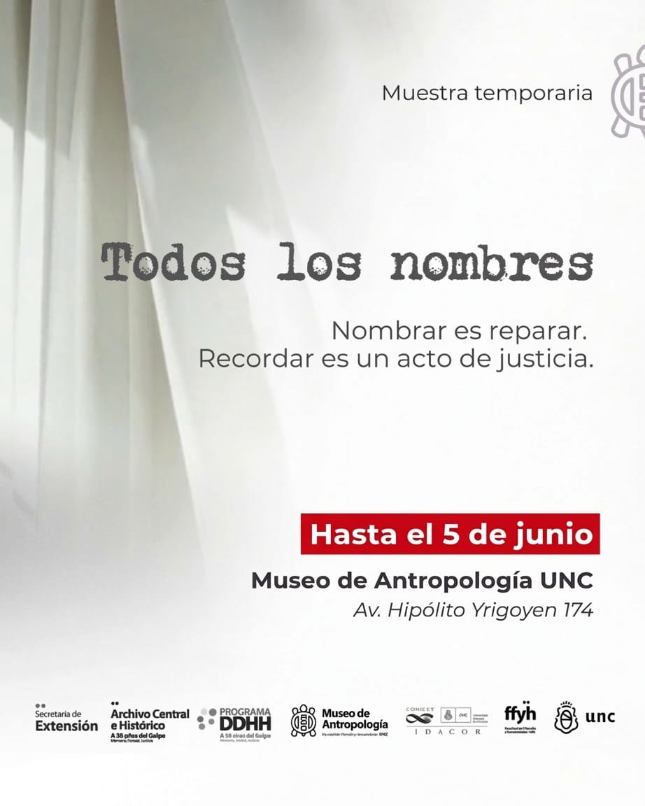 A 50 años del último golpe cívico-militar del 24 de marzo de 1976, el Museo de Antropología invita a recorrer esta muestra temporaria que reúne los nombres de estudiantes desaparecidxs que forman parte de la historia de la Facultad de Filosofía y Humanidades de la Universidad Nacional de Córdoba, durante la década de 1970.