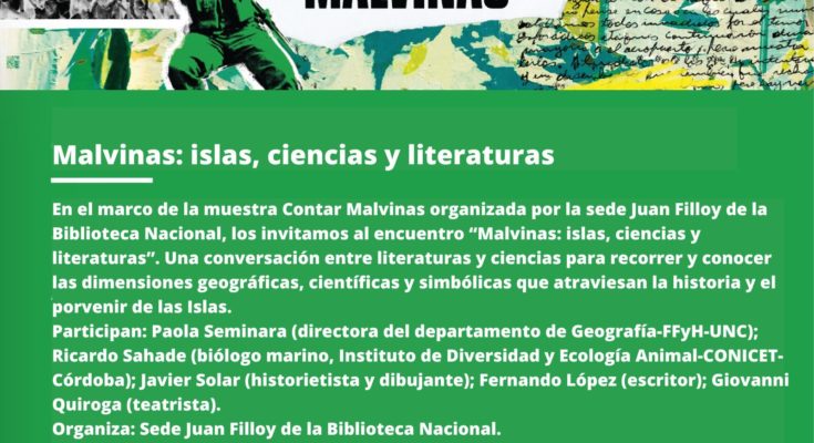 En el marco de la muestra Contar Malvinas organizada por la sede Juan Filloy de la Biblioteca Nacional, el miércoles 3 de mayo, a las 18hs, en la Biblioteca Córdoba (27 de Abril 375), se llevará a cabo el encuentro “Malvinas: islas, ciencias y literaturas”.