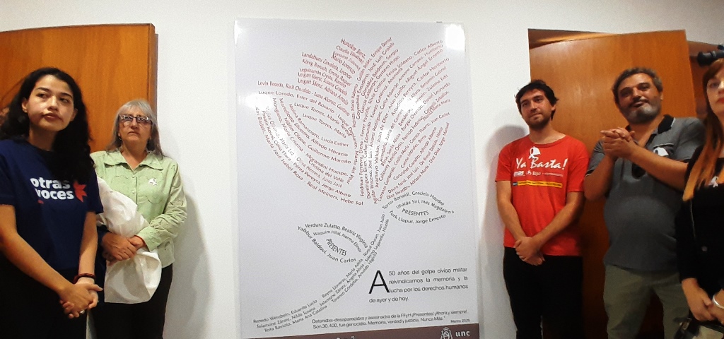 Ahí, en ese punto de encuentro entre autoridades, equipo de gestión, docentes, nodocentes, estudiantes, familiares, amigxs y seres queridos de aquellos estudiantes y egresadxs, comenzó una jornada que quedará en la memoria de una de las facultades más afectadas por el Terrorismo de Estado.