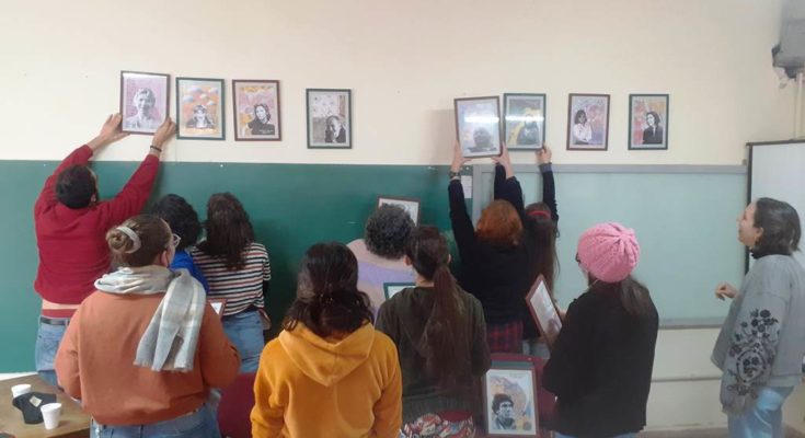 La actividad se desarrolló en el marco del último encuentro del Seminario de Género y convocó a un grupo de estudiantes y profesores que, tijeras, plasticola, papeles, clavos y martillo en mano, armaron y colgaron los nuevos cuadros. Una vez completada esa tarea, se leyeron poemas y textos narrativos elegidos al azar y pertenecientes a les escritorxs que ahora han quedado en el Aula Verdugo.